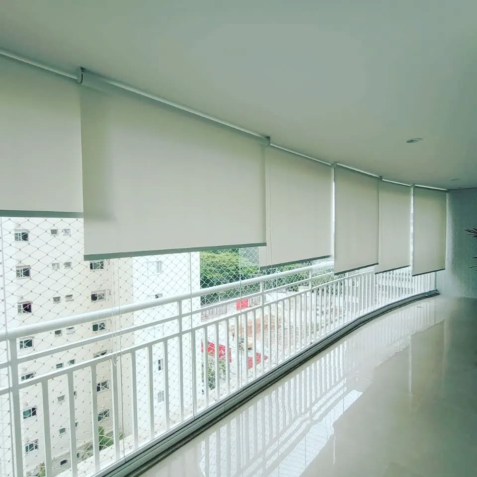 Somos referência no segmento de cortinas rolos para sacada e oferecemos uma solução em tecido solares (Screen), que minimizam a incidencia dos raios UV, aliviando conforto termico, visual e preservando seus moveis
